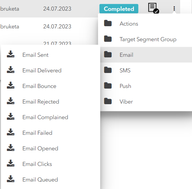 Email Delivered: Exports an .csv file containing details of all emails that have been successfully delivered