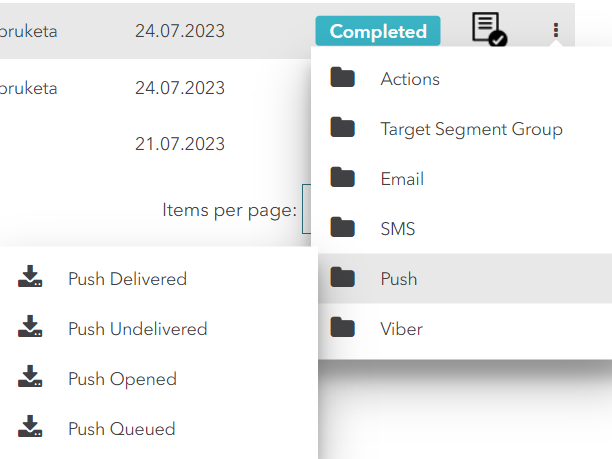Push Undelivered: Exports an .csv file listing all push notifications that were not successfully delivered to their intended recipients, encountering delivery issues or failures