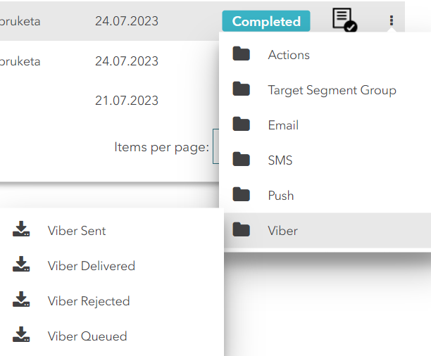 Viber Sent: Exports an .csv file containing details of all Viber messages that have been successfully sent