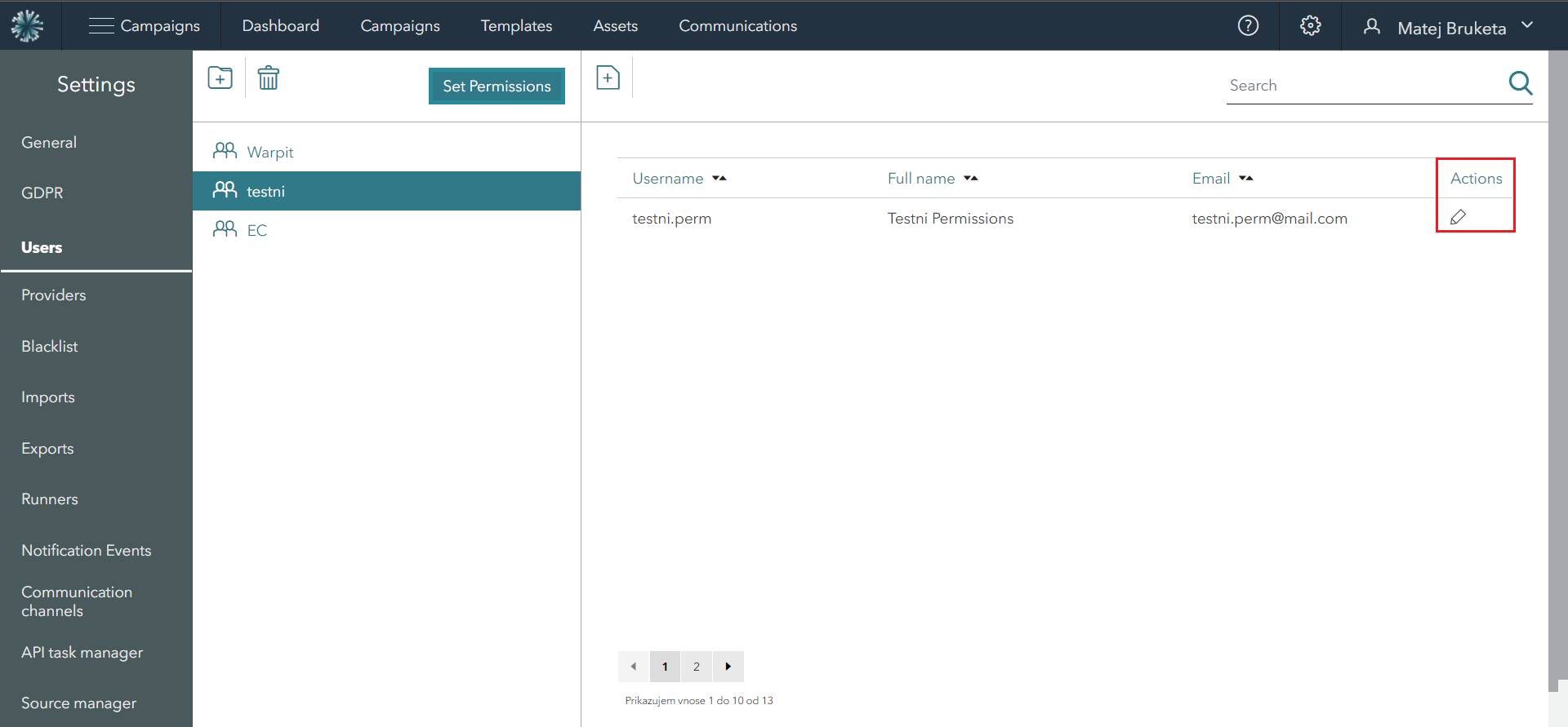 Once you access the Users tab, choose the specific user you wish to enable two-factor authentication for. Then, proceed to click on the pen button located under the Actions column.
