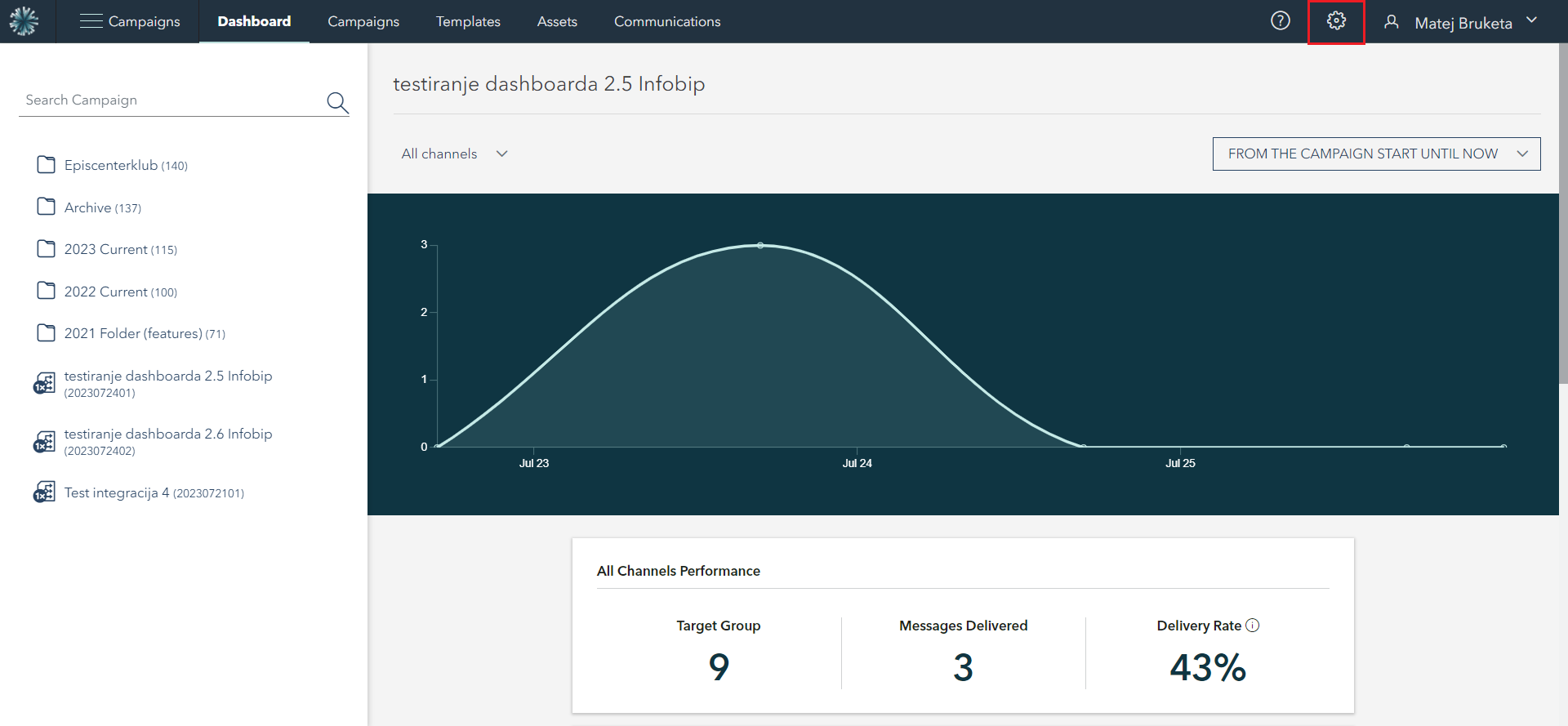 To access the settings window, click on the cog icon located in the top-right corner of the page. This will grant you access to the various configuration options for the platform.
